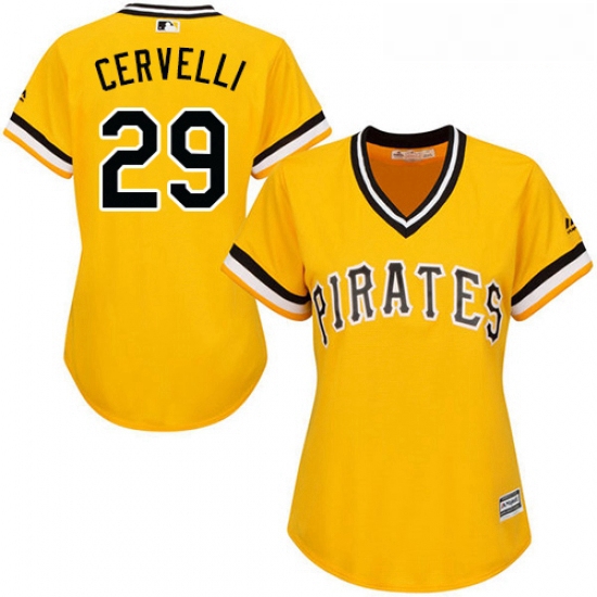 Home>MLB>Pittsurgh Pirates>Women>Womens Majestic Pittsburgh Pirates 29 Francisco Cervelli Replica Gold Alternate Cool Base MLB Jersey