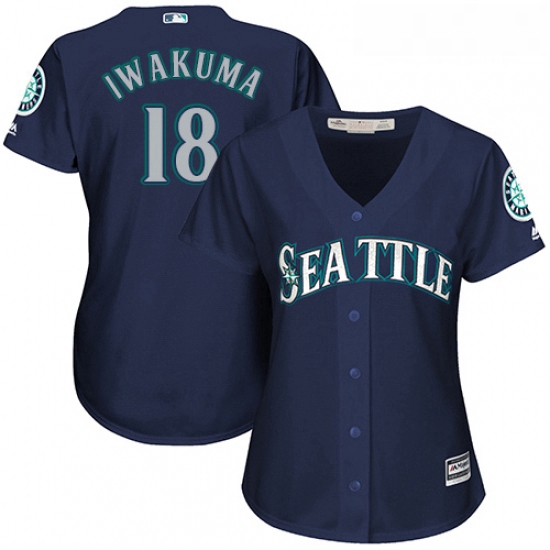 Home>MLB>Seattle Mariners>Women>Womens Majestic Seattle Mariners 18 Hisashi Iwakuma Authentic Navy Blue Alternate 2 Cool Base MLB Jersey