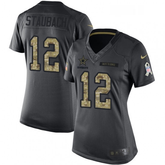 Home>NFL>Dallas Cowboys>Women>Womens Nike Dallas Cowboys 12 Roger Staubach Limited Black 2016 Salute to Service NFL Jersey