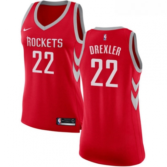 Womens Nike Houston Rockets 22 Clyde Drexler Swingman Red Road NBA Jersey Icon Edition
