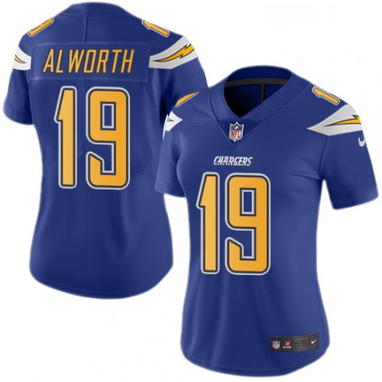 Home>NFL>Los Angeles Chargers>Women>Womens Nike Los Angeles Chargers 19 Lance Alworth Limited Electric Blue Rush Vapor Untouchable NFL Jersey