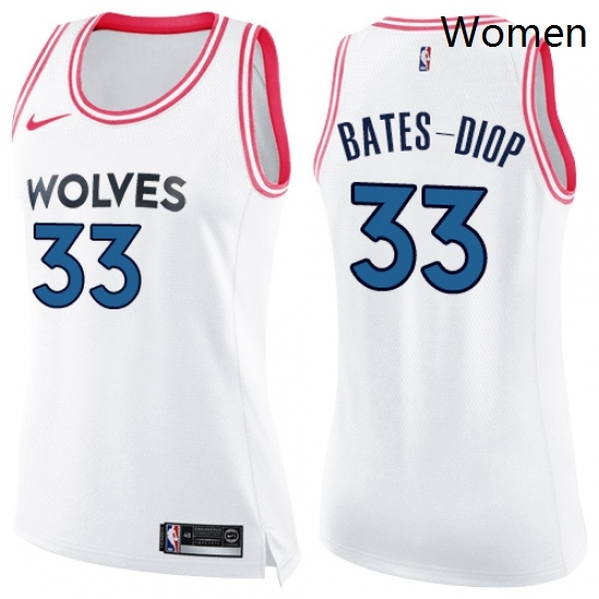 Home>NBA>Minnesota Timberwolves>Women>Womens Nike Minnesota Timberwolves 33 Keita Bates Diop Swingman White Pink Fashion NBA Jersey