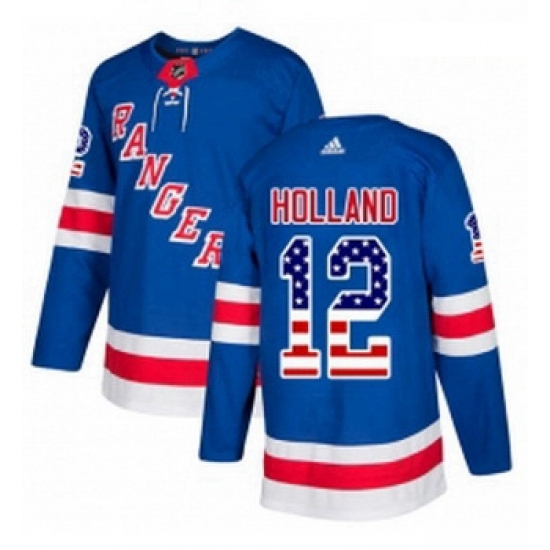 Home>NHL>New York Rangers>Youth>Youth Adidas New York Rangers 12 Peter Holland Authentic Royal Blue USA Flag Fashion NHL Jersey