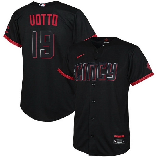 Youth Cincinnati Reds 19 Joey Votto Black 2023 City Connect Stitched Baseball Jersey