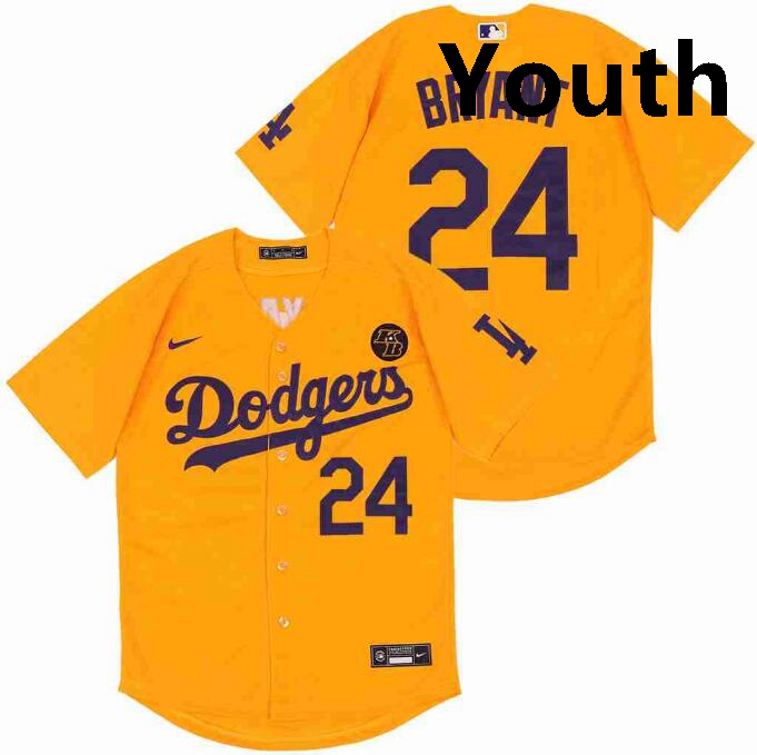 Home>MLB>Los Angeles Dodgers>Youth>Youth Dodgers 24 Kobe Bryant Yellow Cool Base Stitched MLB Jersey