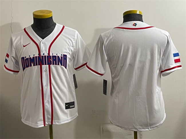Youth Dominican Republic Baseball Blank White 2026 World Baseball Classic Home Stadium Stitched Baseball Jersey