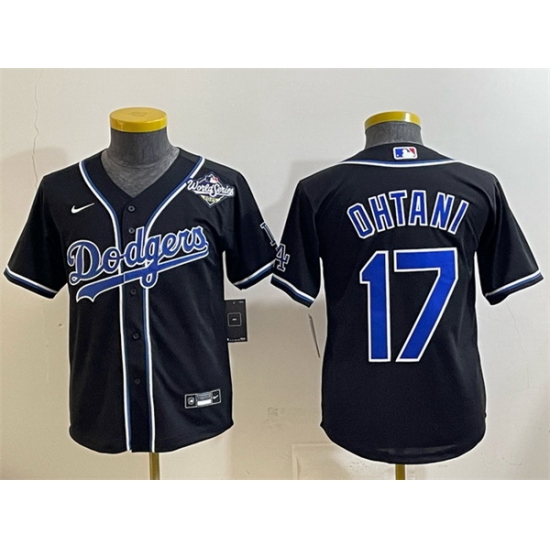 Youth Los Angeles Dodgers 17 Shohei Ohtani Black Fashion 2025 World Series Cool Base Stitched Baseball Jersey