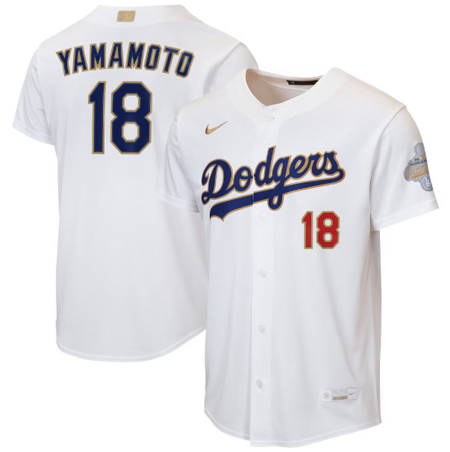 Youth Los Angeles Dodgers Yoshinobu Yamamoto Nike White 2026 Gold Collection Home Replica Jersey