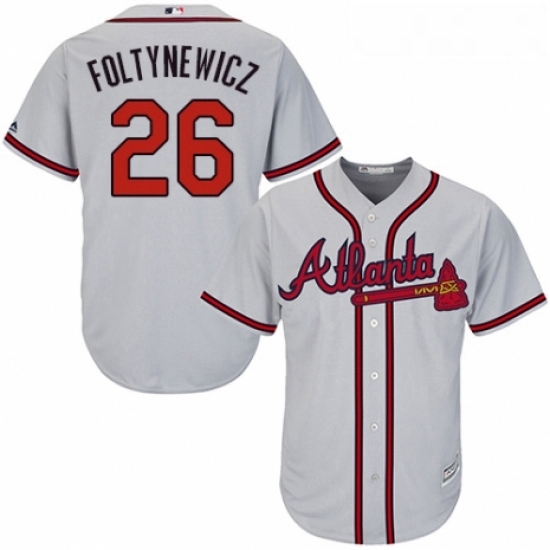 Home>MLB>Atlanta Braves>Youth>Youth Majestic Atlanta Braves 26 Mike Foltynewicz Authentic Grey Road Cool Base MLB Jersey