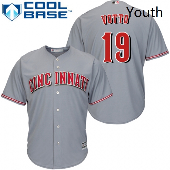 Home>MLB>Cincinnati Reds>Youth>Youth Majestic Cincinnati Reds 19 Joey Votto Authentic Grey Road Cool Base MLB Jersey