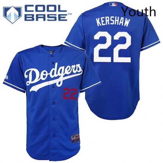 Youth Majestic Los Angeles Dodgers 22 Clayton Kershaw Replica Royal Blue Cool Base MLB Jersey
