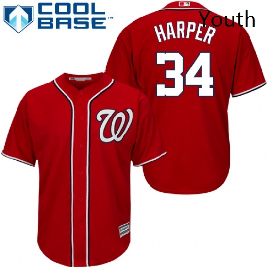Youth Majestic Washington Nationals 34 Bryce Harper Authentic Red Alternate 1 Cool Base MLB Jersey