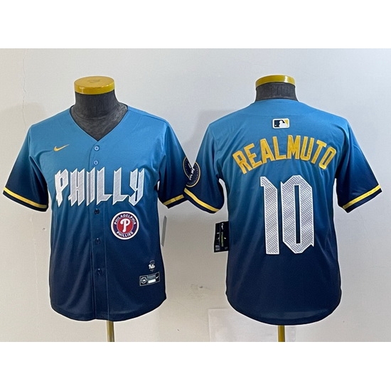 Youth Philadelphia Phillies 10 J T Realmuto Blue 2024 City Connect Limited Stitched Baseball Jersey 8