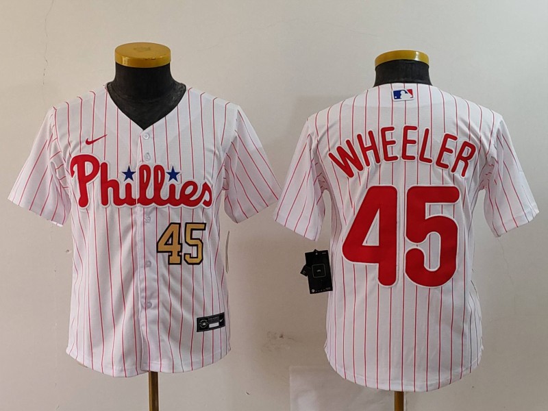 Youth Philadelphia Phillies 45 Zack Wheeler White Cool Base Stitched Baseball Jersey 1