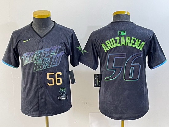 Home>MLB>Tampa Bay Rays>Youth>Youth Tampa Bay Rays 56 Randy Arozarena Charcoal 2024 City Connect Limited Stitched Baseball Jersey 7