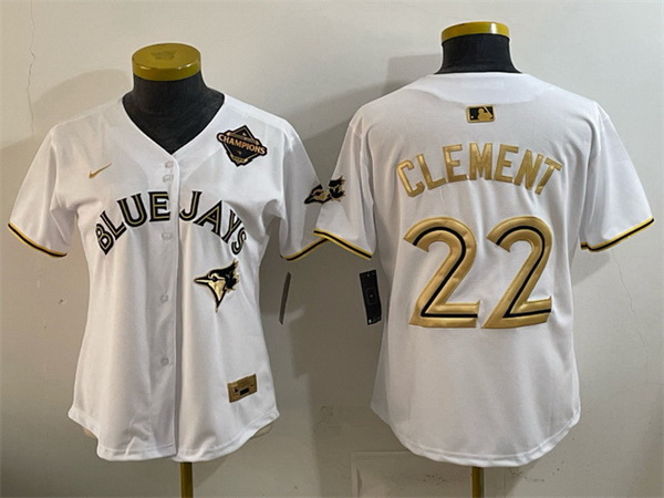 Home>MLB>Toronto Blue Jays>Youth>Youth Toronto Blue Jays 22 Ernie Clement White Gold 2025 American League Champions Limited Stitched Baseball Jersey