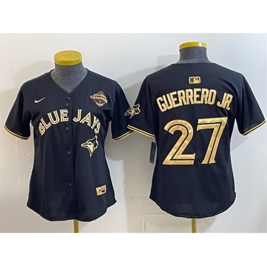 Home>MLB>Toronto Blue Jays>Youth>Youth Toronto Blue Jays 27 Vladimir Guerrero Jr Black Gold 2025 American League Champions Limited Stitched Baseball Jersey