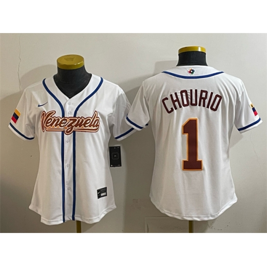 Youth Venezuela Baseball 1 Jackson Chourio White 2026 World Baseball Classic Home Stadium Stitched Baseball Jersey