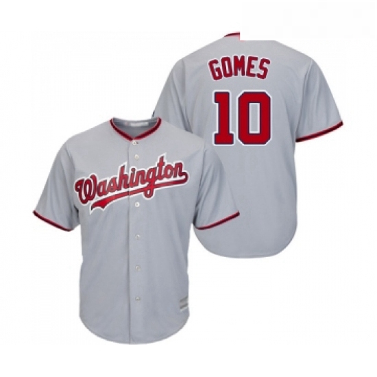 Youth Washington Nationals 10 Yan Gomes Replica Grey Road Cool Base Baseball Jersey
